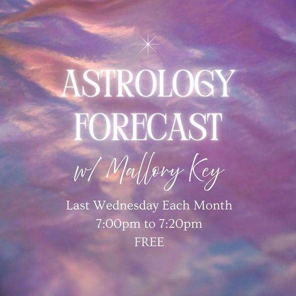 Join Mallory Key for an astrological overview of the month ahead with this FREE 20 minute monthly Zoom call. Astrology Talk helps shed light on the Astrological Weather for the following month including major transits and lunar energies.